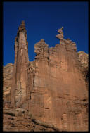 Car-to-car time was about 7 hours, so we still had plenty of daylight. Since the Fisher Towers are just down the road, we headed over. Talk about outrageous! How these things were ever climbed, I'm not sure. We hiked around the towers and burned more film.