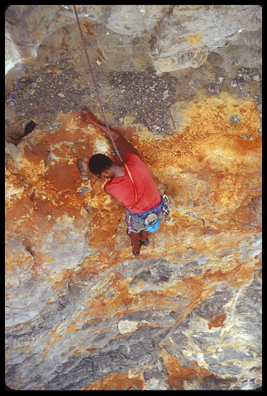 Darryl Jones climbing the second pitch of Ao Nang Tower