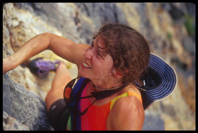 Sheryl Lehman climbing the first pitch of Ao Nang Tower