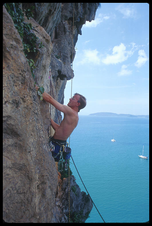 David Benson climbing "Getting to Know You" (7a) at the Thaiwand Wall