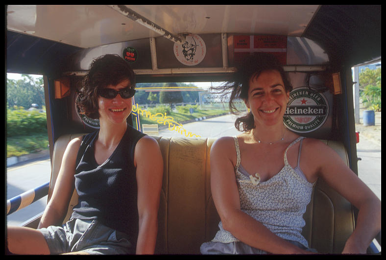 Jamie and Kim riding in a jeepney to the Krabi Airport