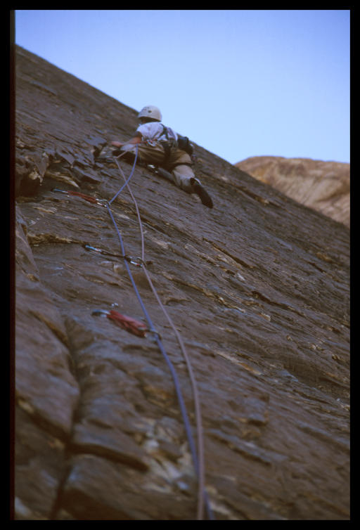 David Benson leading Levitation 29 (5.11), Red Rocks, Nevada