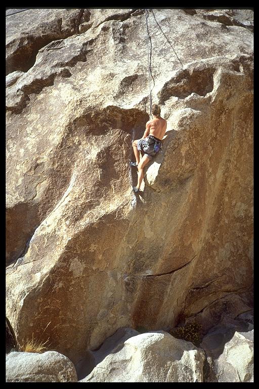 David Benson cranking the moves on Cactus Flower (5.11b). Joshua Tree NP, California