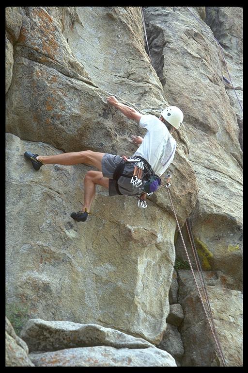 David Benson leading Double Vision (5.10a). City of Rocks, Idaho