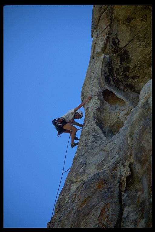 David Benson leading Nipples and Clits (5.10a) at City of Rocks. Idaho