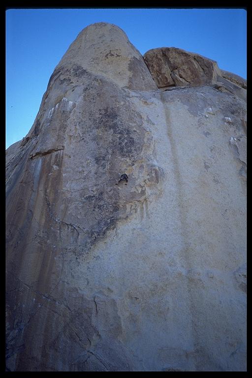 David Benson one of the best climbs in Joshua Tree, Figures on a Landscape (5.10b). Joshua Tree NP, California
