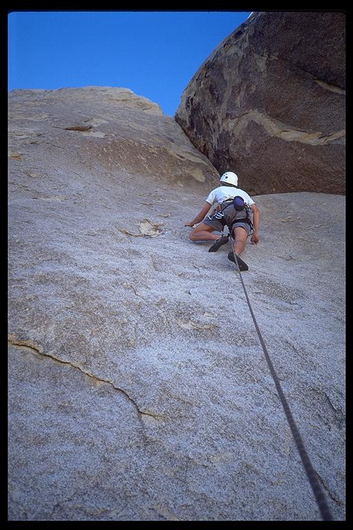 David Benson leading Tumbling Rainbow (5.10a). Joshua Tree NP, California