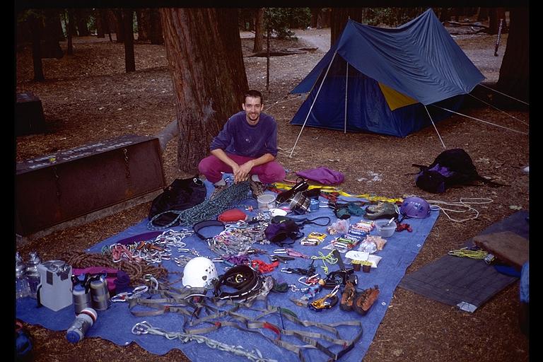 The age old Yosemite tradition - sorting gear for a wall. Yosemite, California