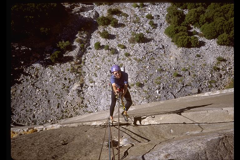Jamie Leef jumaring up Zodiac. El Capitan, Yosemite, California