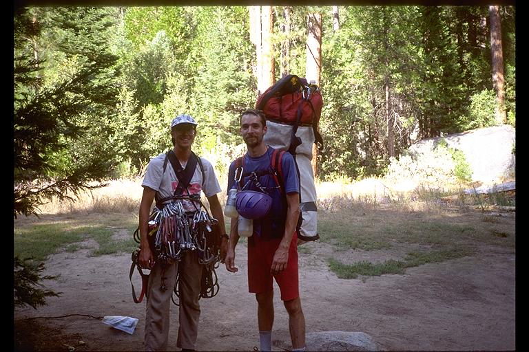 David Benson and Jamie Leef after camping out on Zodiac. Yosemite, California