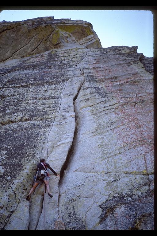 Steve Angelini leading variation on the second pitch of Traveller's Buttress (5.9), Lover's Leap, California